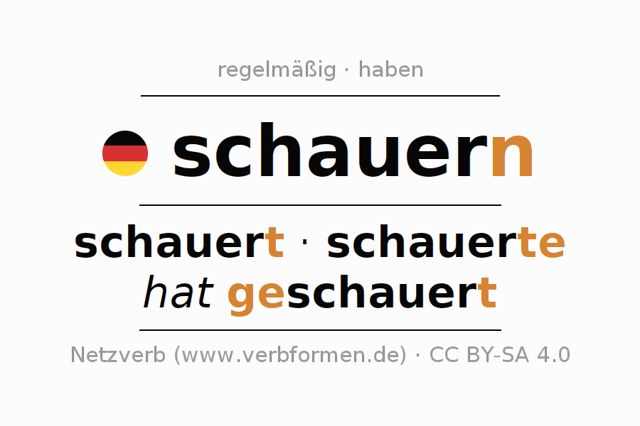 Das Verb schauern vollständig in allen Personen und Numeri im Imperativ Präsens konjugiert