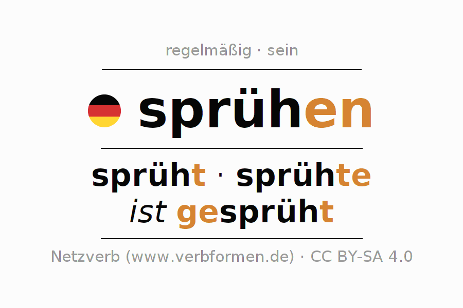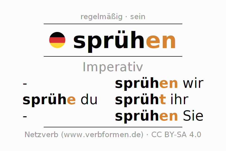 Das Verb sprühen (ist) vollständig in allen Personen und Numeri im Imperativ Präsens konjugiert