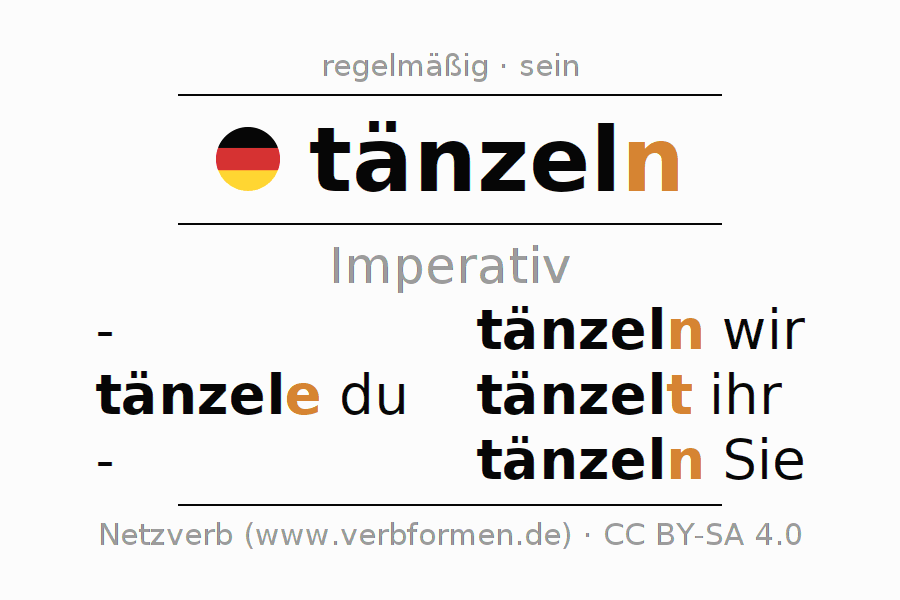 Das Verb tänzeln vollständig in allen Personen und Numeri im Imperativ Präsens konjugiert