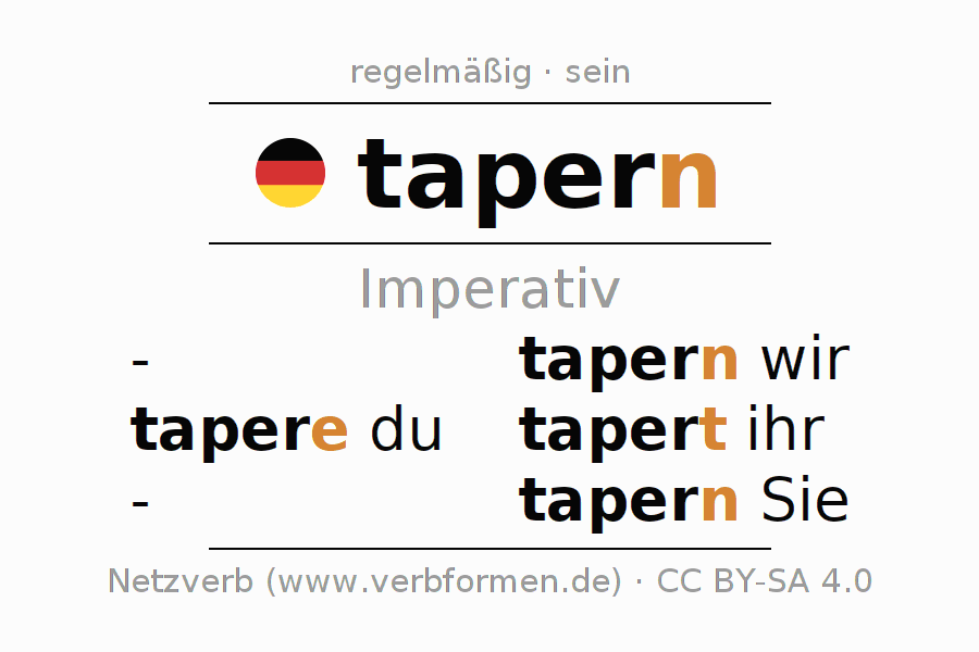 Das Verb tapern vollständig in allen Personen und Numeri im Imperativ Präsens konjugiert