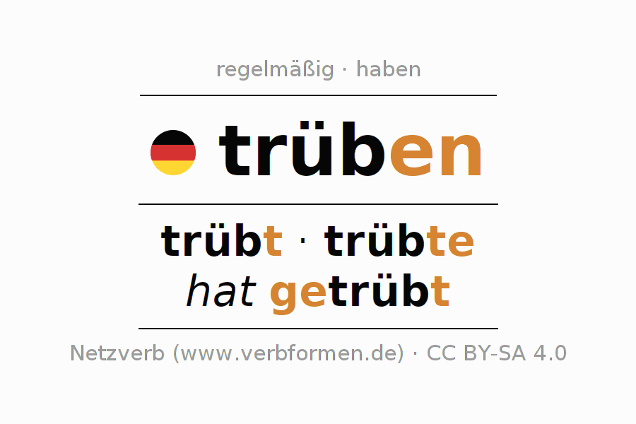 Das Verb trüben vollständig in allen Personen und Numeri im Imperativ Präsens konjugiert