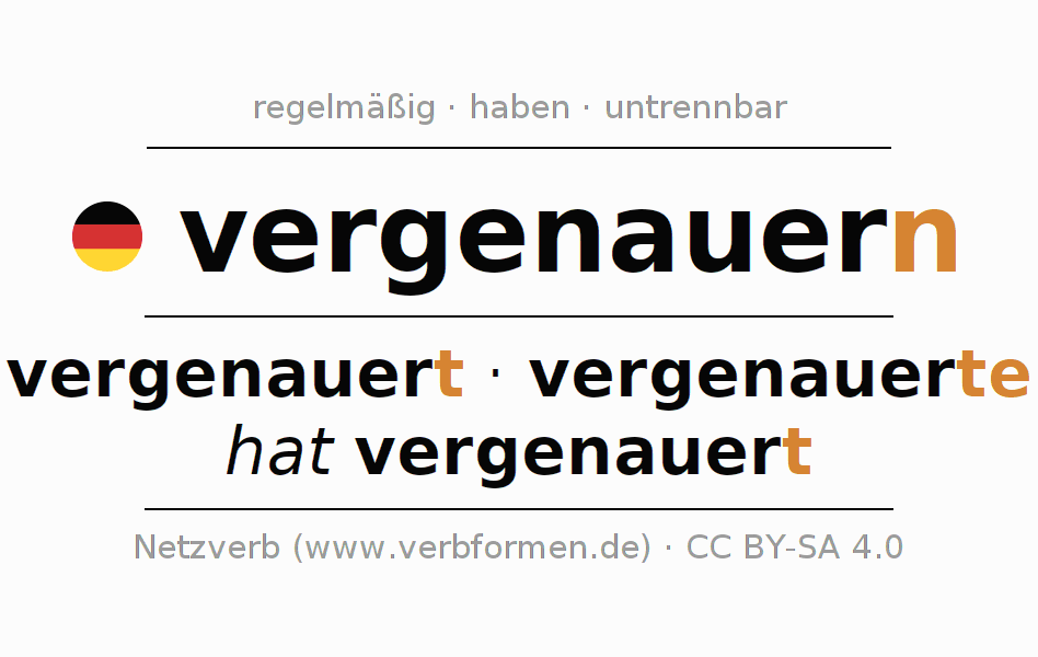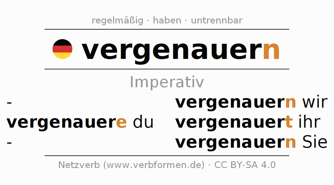 Das Verb vergenauern vollständig in allen Personen und Numeri im Imperativ Präsens konjugiert