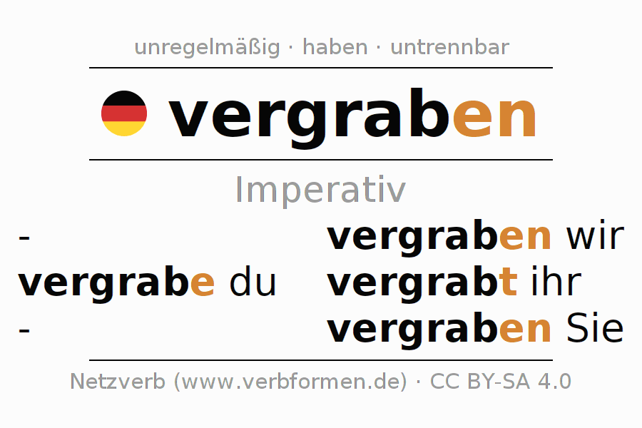 Das Verb vergraben vollständig in allen Personen und Numeri im Imperativ Präsens konjugiert