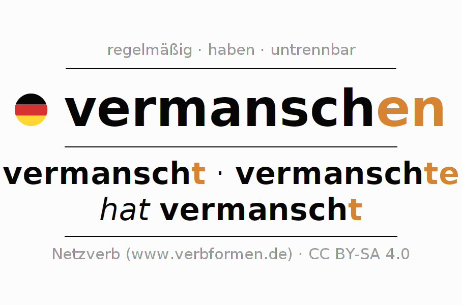 Das Verb vermanschen vollständig in allen Personen und Numeri im Imperativ Präsens konjugiert