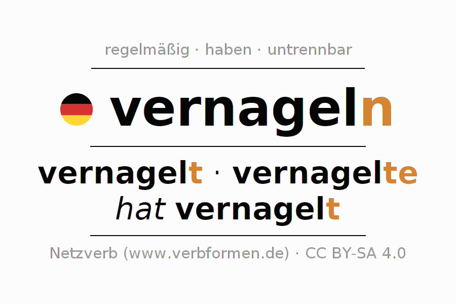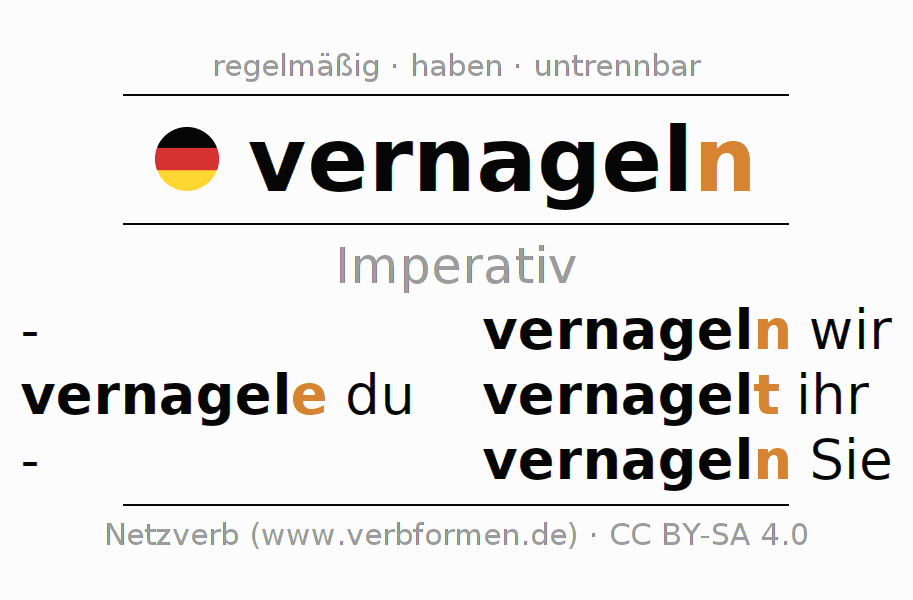 Das Verb vernageln vollständig in allen Personen und Numeri im Imperativ Präsens konjugiert