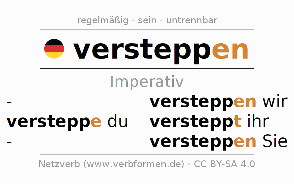 Das Verb versteppen vollständig in allen Personen und Numeri im Imperativ Präsens konjugiert