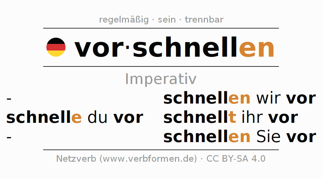 Das Verb vorschnellen vollständig in allen Personen und Numeri im Imperativ Präsens konjugiert