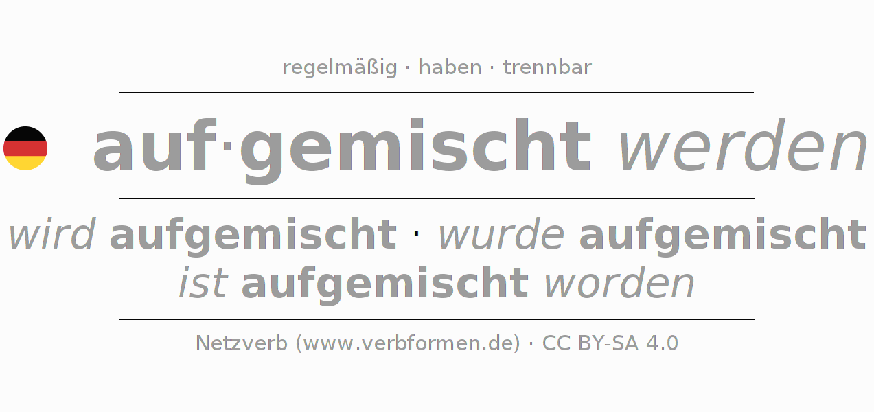 Das Verb aufmischen vollständig in allen Personen und Numeri im Imperativ Präsens konjugiert