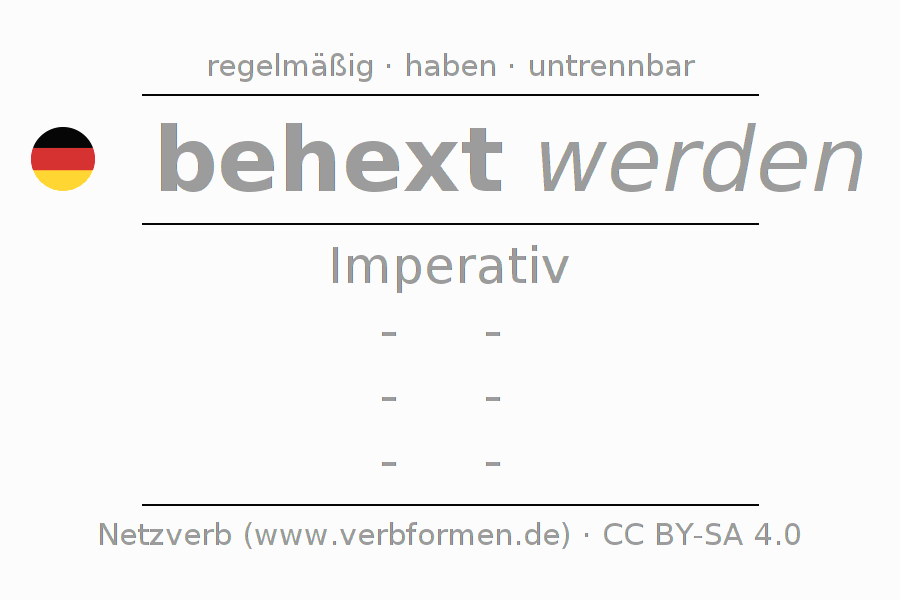 Das Verb behexen vollständig in allen Personen und Numeri im Imperativ Präsens konjugiert