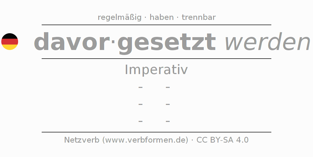Das Verb davorsetzen vollständig in allen Personen und Numeri im Imperativ Präsens konjugiert