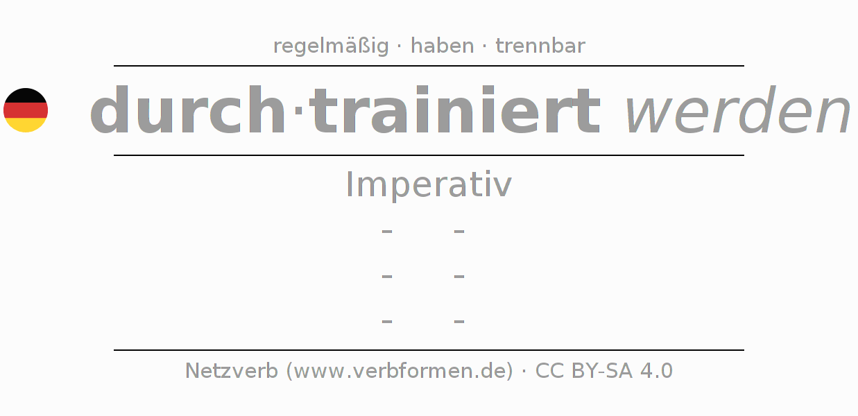 Das Verb durchtrainieren vollständig in allen Personen und Numeri im Imperativ Präsens konjugiert