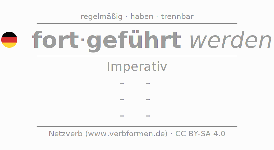 Das Verb fortführen vollständig in allen Personen und Numeri im Imperativ Präsens konjugiert