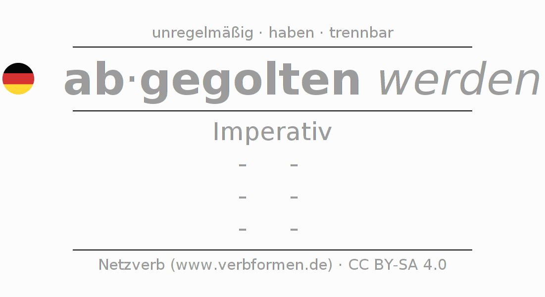 Das Verb abgelten vollständig in allen Personen und Numeri im Imperativ Präsens konjugiert