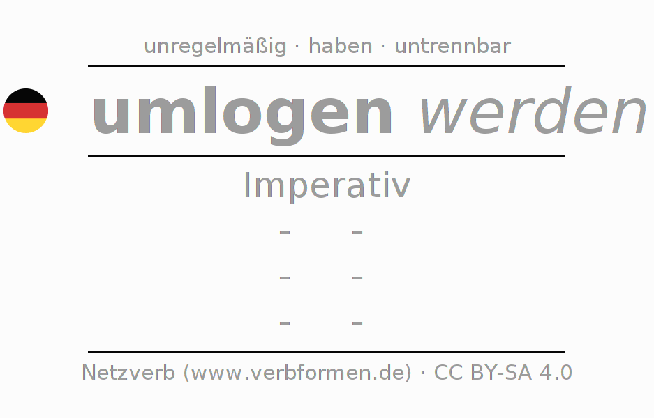 Die Konjugation von umlügen im Imperativ Präsens Befehlsform Vorgangspassiv ist: -, -, -, -.Die Bildung dieser Formen entspricht gewissen grammatischen Regeln. So auch die Vorgaben zur Konjugation der einfachen Verbformen von umlügen im Imperativ. Kommentare ☆