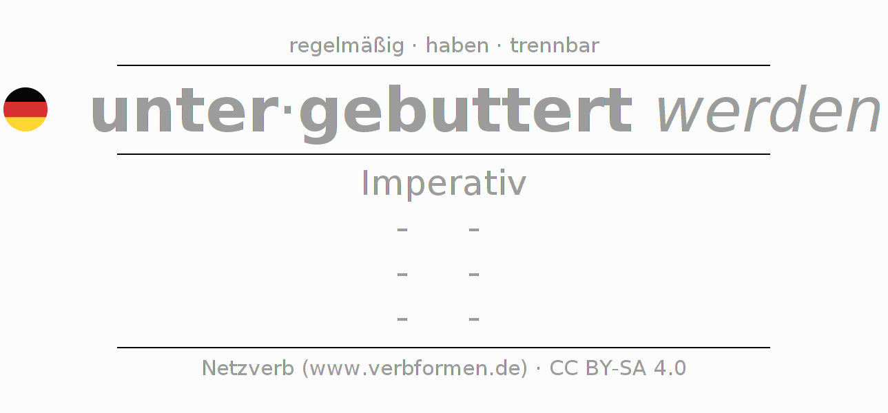 Das Verb unterbuttern vollständig in allen Personen und Numeri im Imperativ Präsens konjugiert