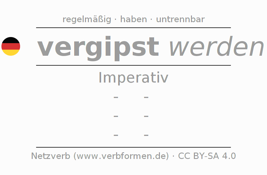 Das Verb vergipsen vollständig in allen Personen und Numeri im Imperativ Präsens konjugiert