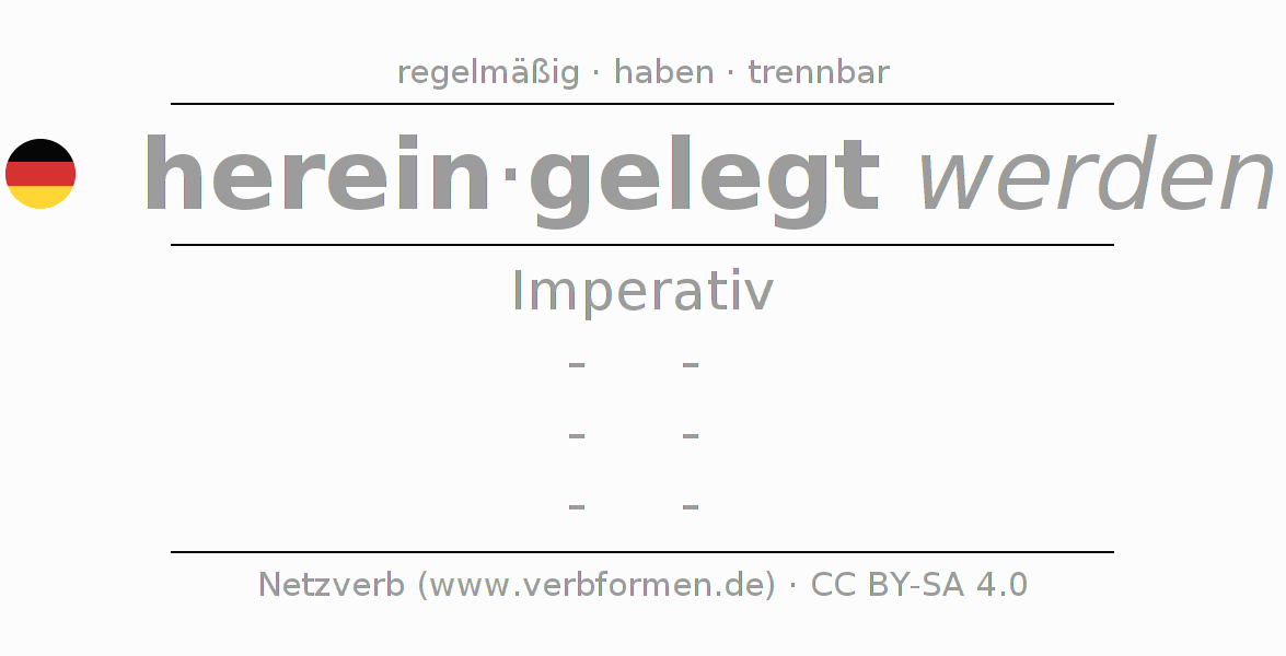Das Verb hereinlegen vollständig in allen Personen und Numeri im Imperativ Präsens konjugiert