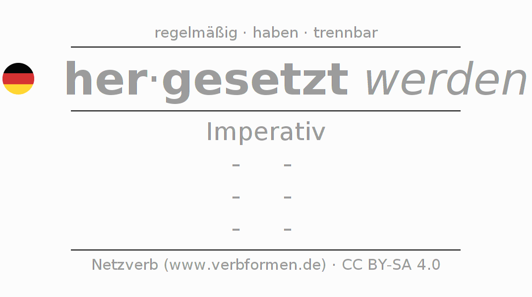 Das Verb hersetzen vollständig in allen Personen und Numeri im Imperativ Präsens konjugiert