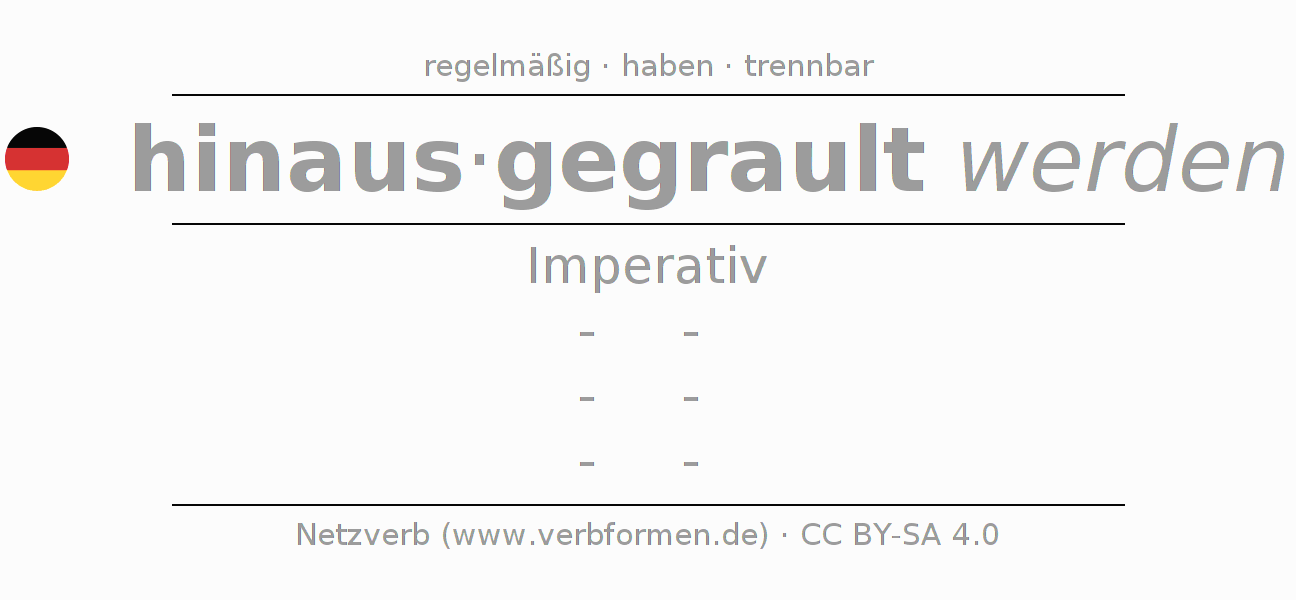 Das Verb hinausgraulen vollständig in allen Personen und Numeri im Imperativ Präsens konjugiert