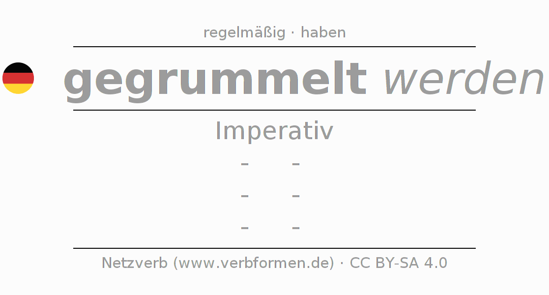 Das Verb grummeln vollständig in allen Personen und Numeri im Imperativ Präsens konjugiert