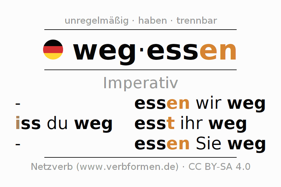 Das Verb wegessen vollständig in allen Personen und Numeri im Imperativ Präsens konjugiert