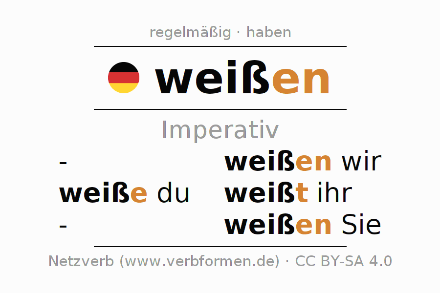 Das Verb weißen vollständig in allen Personen und Numeri im Imperativ Präsens konjugiert