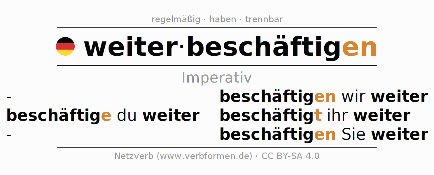- Wie konjugiert man weiterbeschäftigen im Imperativ?