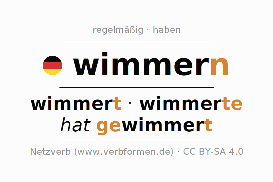 Das Verb wimmern vollständig in allen Personen und Numeri im Imperativ Präsens konjugiert
