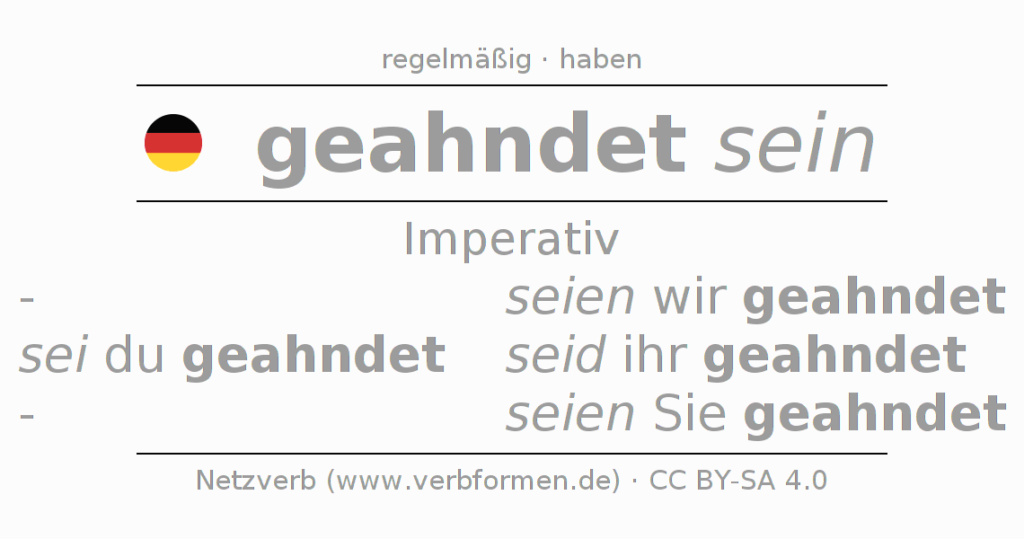 Das Verb ahnden vollständig in allen Personen und Numeri im Imperativ Präsens konjugiert
