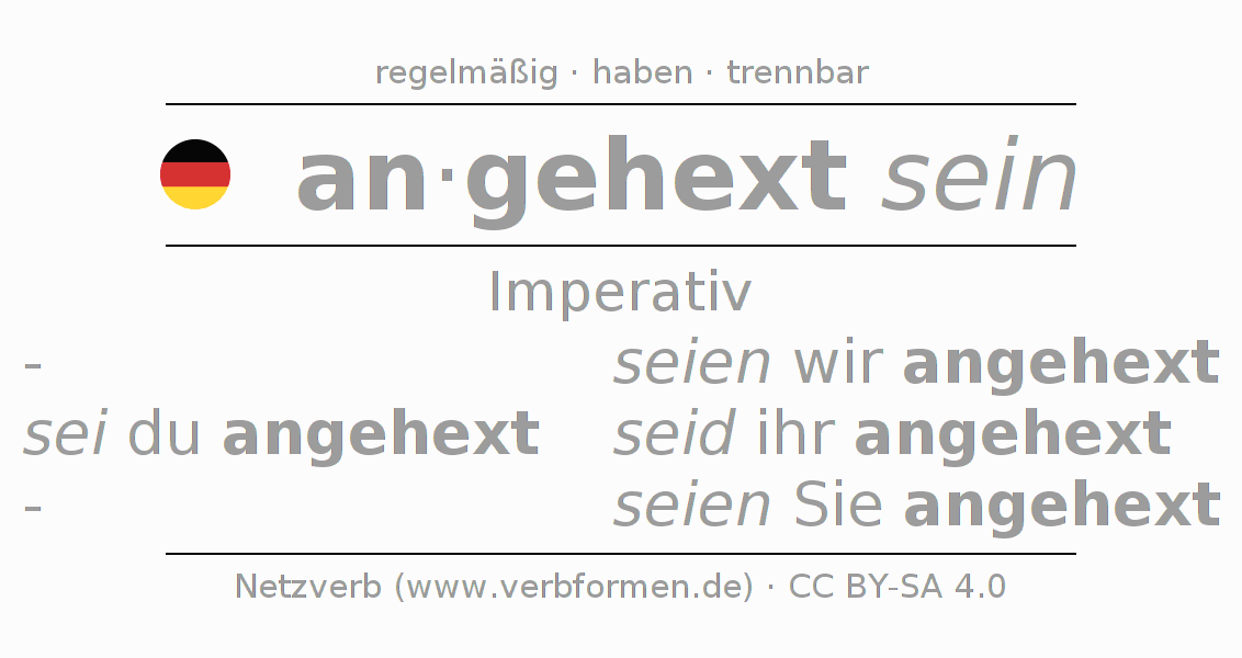 Das Verb anhexen vollständig in allen Personen und Numeri im Imperativ Präsens konjugiert