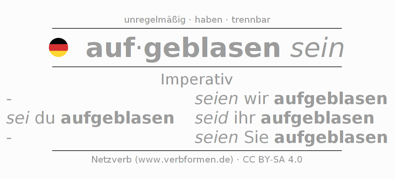 Das Verb aufblasen vollständig in allen Personen und Numeri im Imperativ Präsens konjugiert