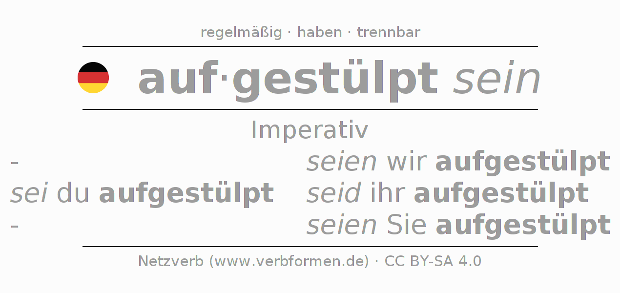 Das Verb aufstülpen vollständig in allen Personen und Numeri im Imperativ Präsens konjugiert