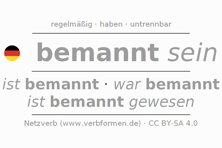 Das Verb bemannen vollständig in allen Personen und Numeri im Imperativ Präsens konjugiert