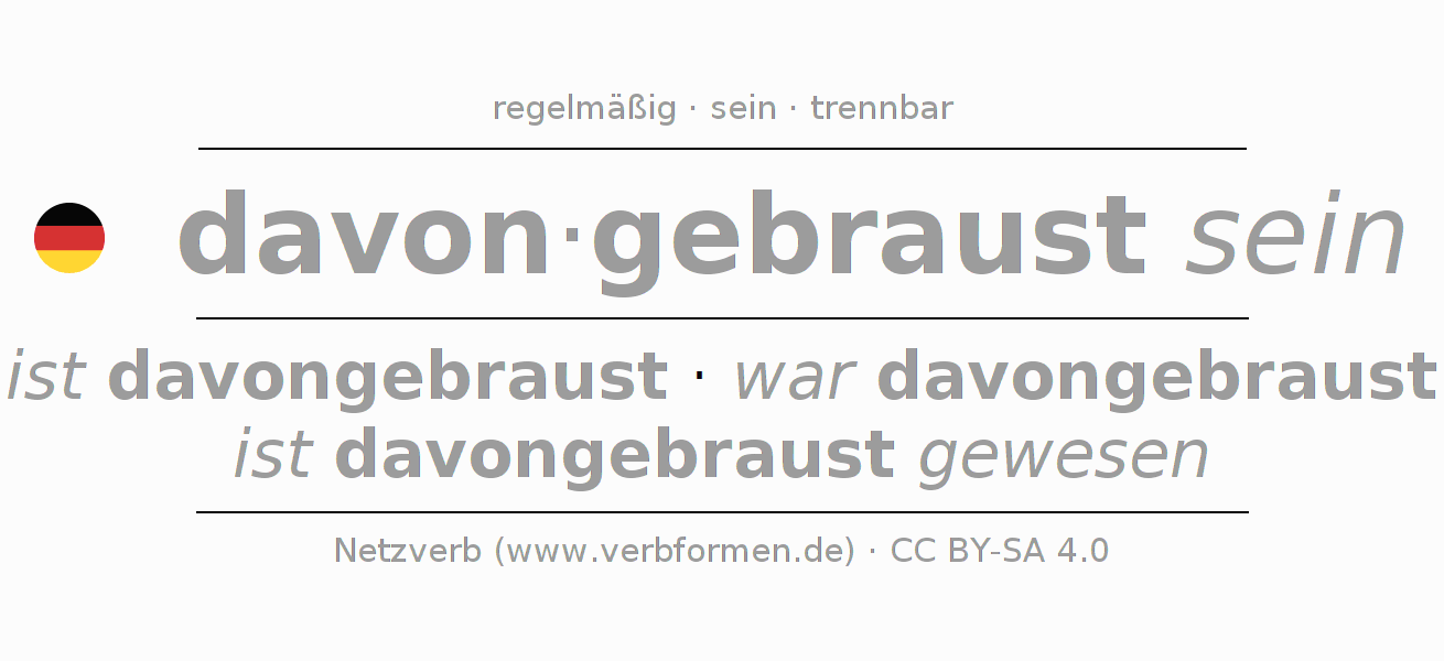 Das Verb davonbrausen vollständig in allen Personen und Numeri im Imperativ Präsens konjugiert
