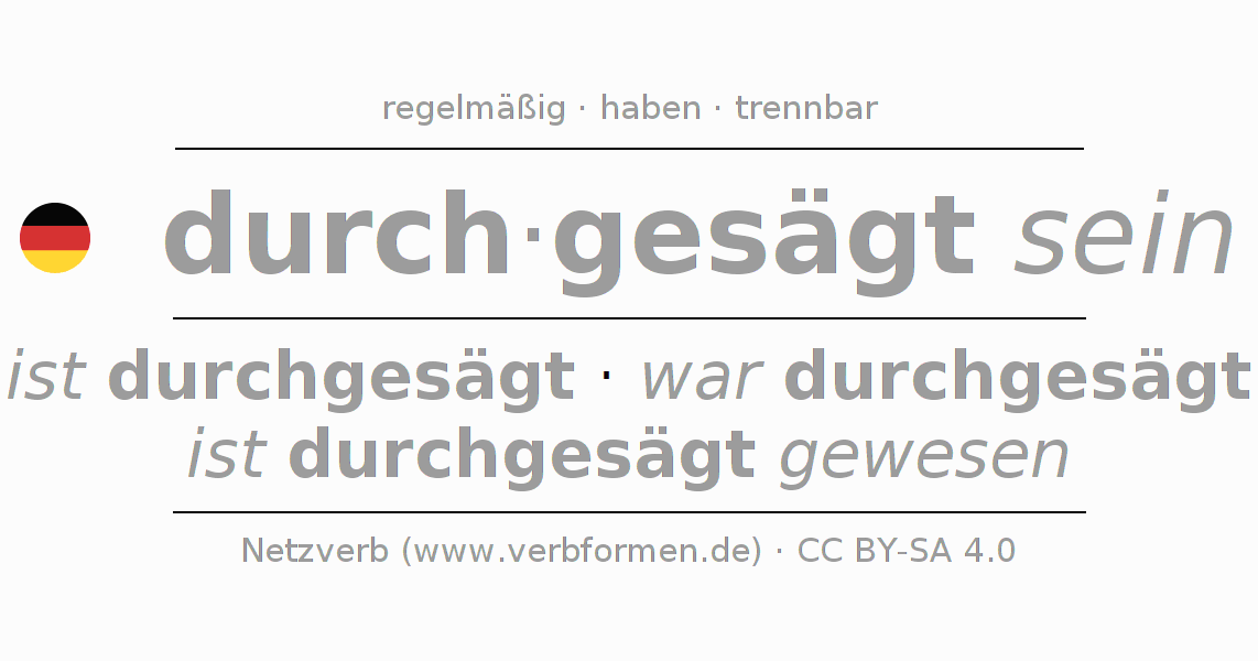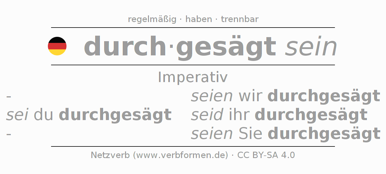 Das Verb durchsägen vollständig in allen Personen und Numeri im Imperativ Präsens konjugiert