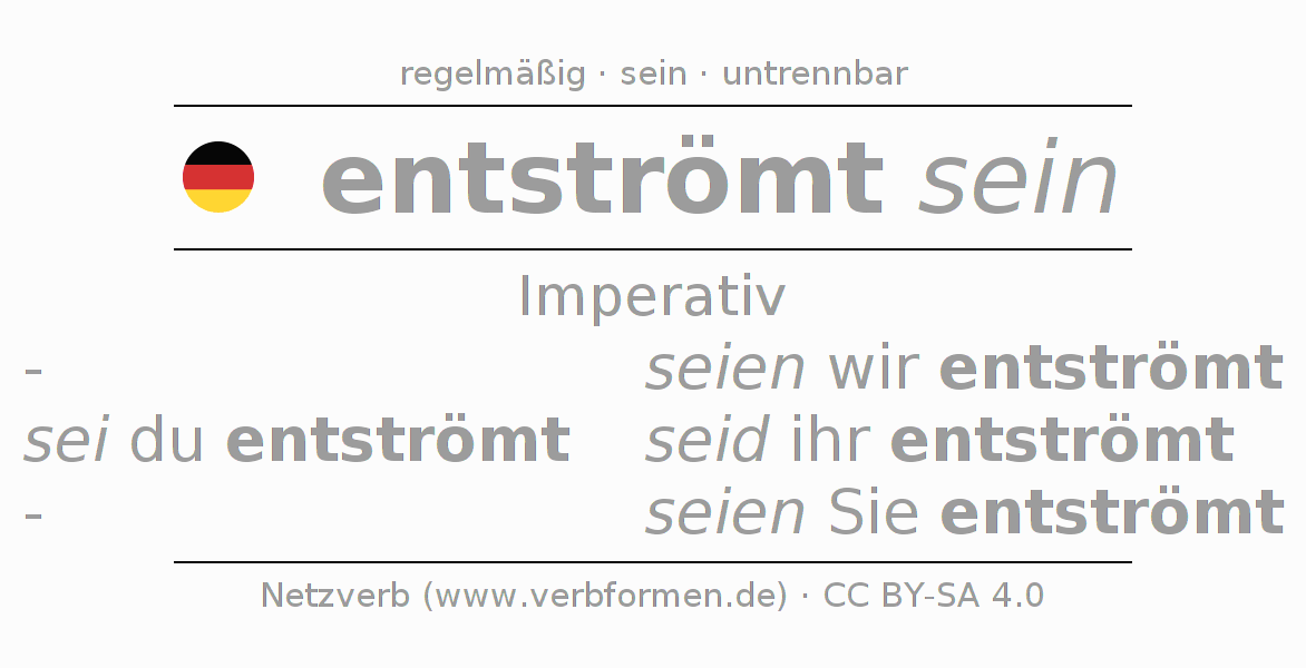 Das Verb entströmen vollständig in allen Personen und Numeri im Imperativ Präsens konjugiert