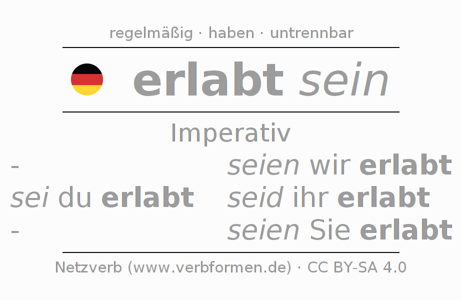 Das Verb erlaben vollständig in allen Personen und Numeri im Imperativ Präsens konjugiert