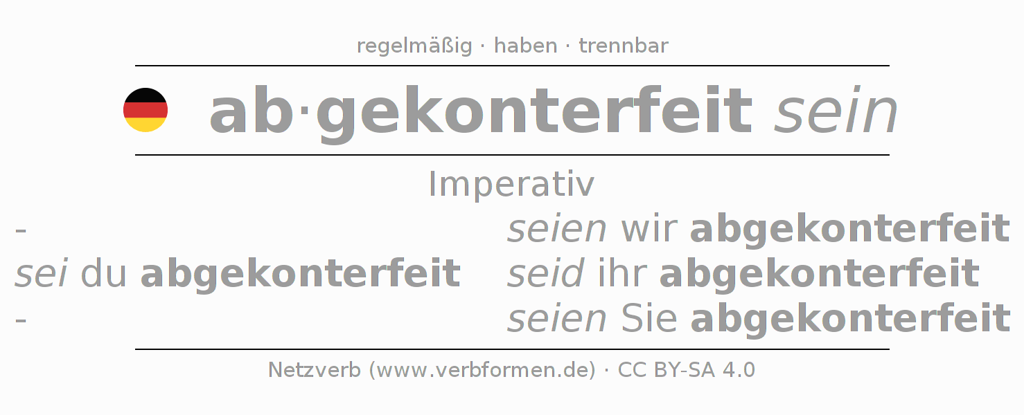 Das Verb abkonterfeien vollständig in allen Personen und Numeri im Imperativ Präsens konjugiert