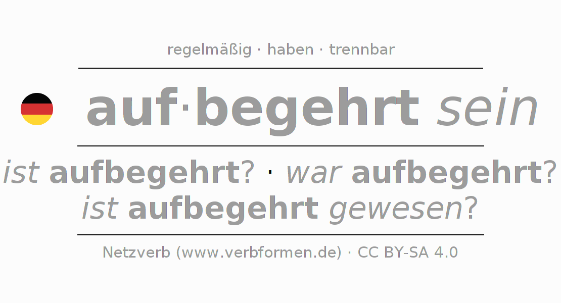 Das Verb aufbegehren vollständig in allen Personen und Numeri im Imperativ Präsens konjugiert