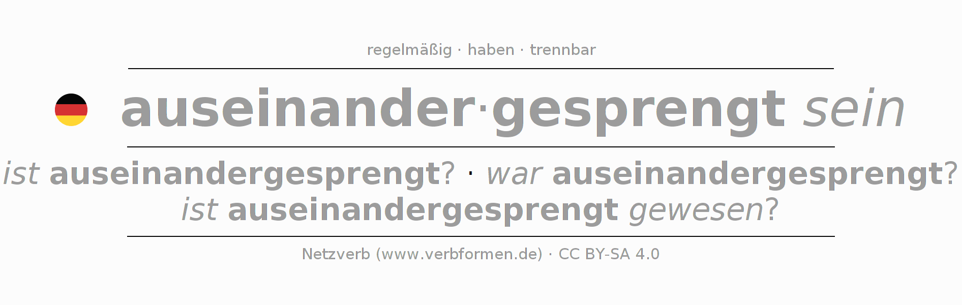 Imperativ des Verbs auseinandersprengen (hat) 〈Zustandspassiv〉 〈Fragesatz〉