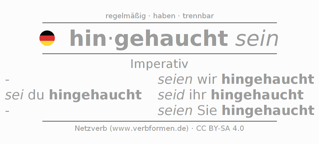 Das Verb hinhauchen vollständig in allen Personen und Numeri im Imperativ Präsens konjugiert