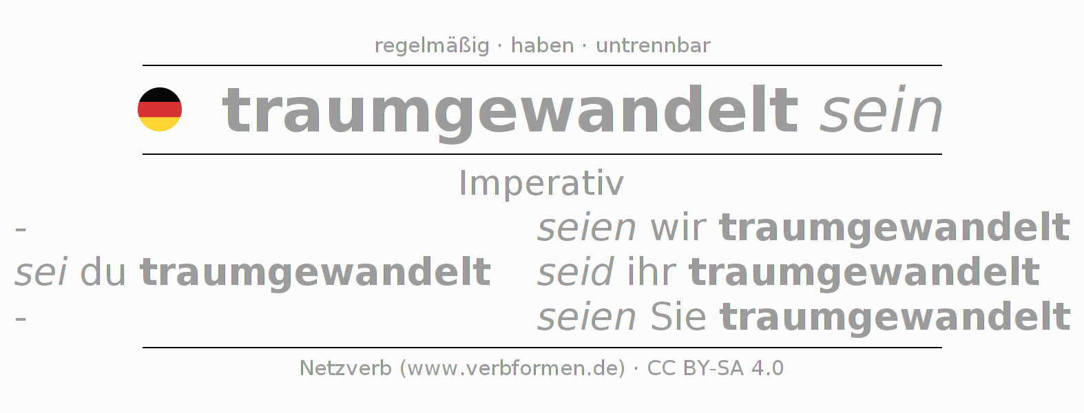 Das Verb traumwandeln (hat) vollständig in allen Personen und Numeri im Imperativ Präsens konjugiert