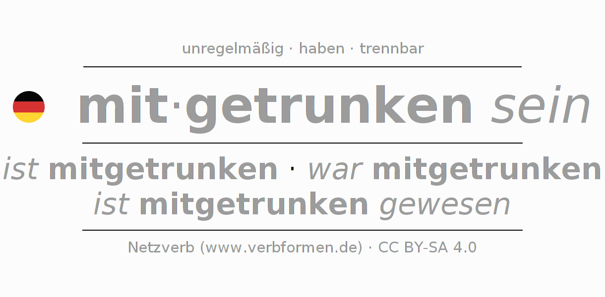 Das Verb mittrinken vollständig in allen Personen und Numeri im Imperativ Präsens konjugiert