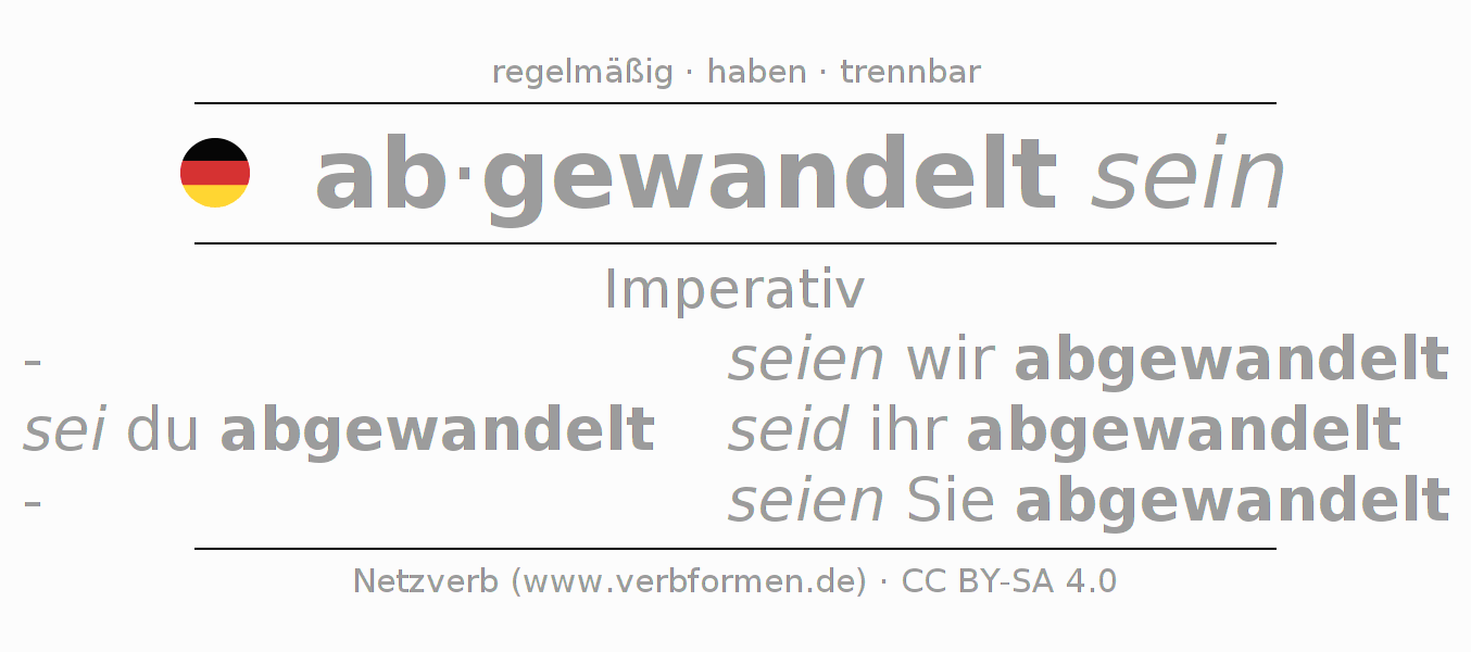 Das Verb abwandeln vollständig in allen Personen und Numeri im Imperativ Präsens konjugiert