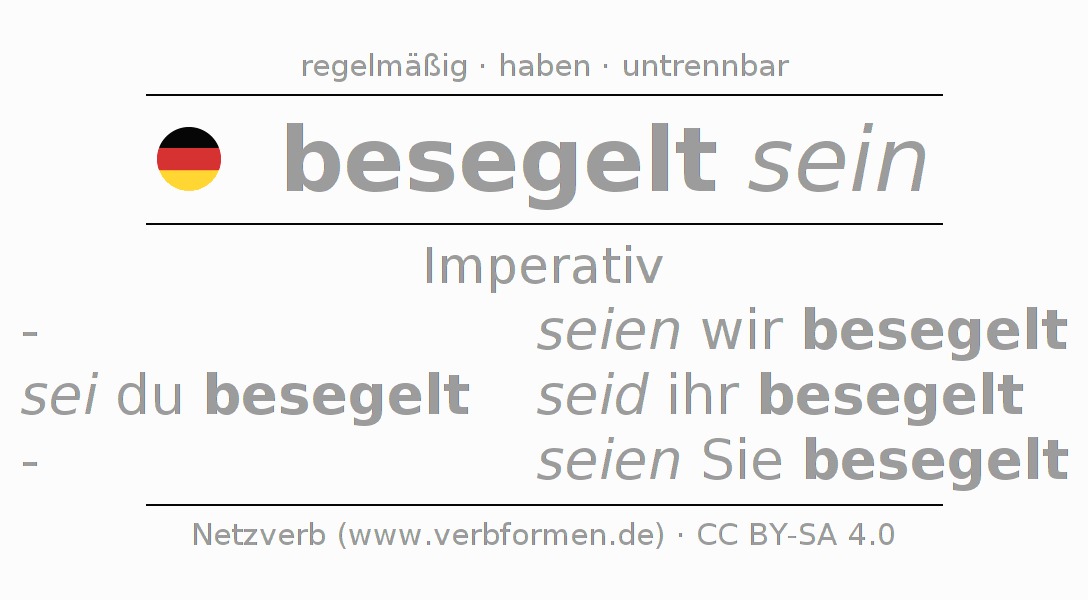 Das Verb besegeln vollständig in allen Personen und Numeri im Imperativ Präsens konjugiert
