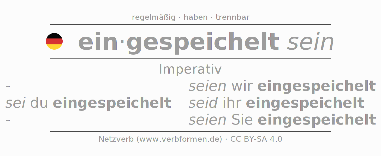 Das Verb einspeicheln vollständig in allen Personen und Numeri im Imperativ Präsens konjugiert