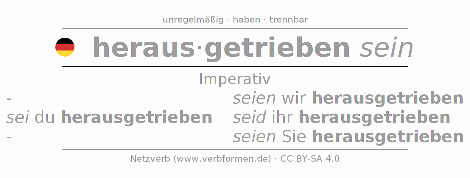 Das Verb heraustreiben vollständig in allen Personen und Numeri im Imperativ Präsens konjugiert