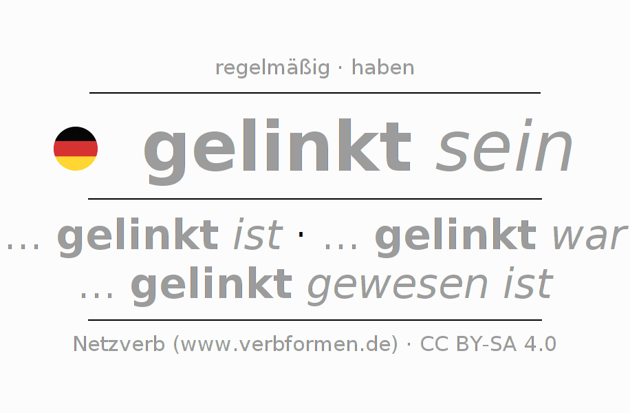 Die Konjugation von linken im Imperativ Präsens Befehlsform Zustandspassiv ist: sei (du) gelinkt, seien wir gelinkt, seid (ihr) gelinkt, seien Sie gelinkt.Die Bildung dieser Formen entspricht gewissen grammatischen Regeln. So auch die Vorgaben zur Konjugation der einfachen Verbformen von linken im Imperativ. Kommentare ☆