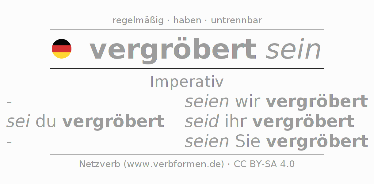 Das Verb vergröbern vollständig in allen Personen und Numeri im Imperativ Präsens konjugiert