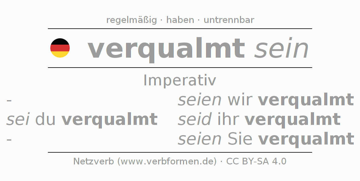 Das Verb verqualmen (hat) vollständig in allen Personen und Numeri im Imperativ Präsens konjugiert